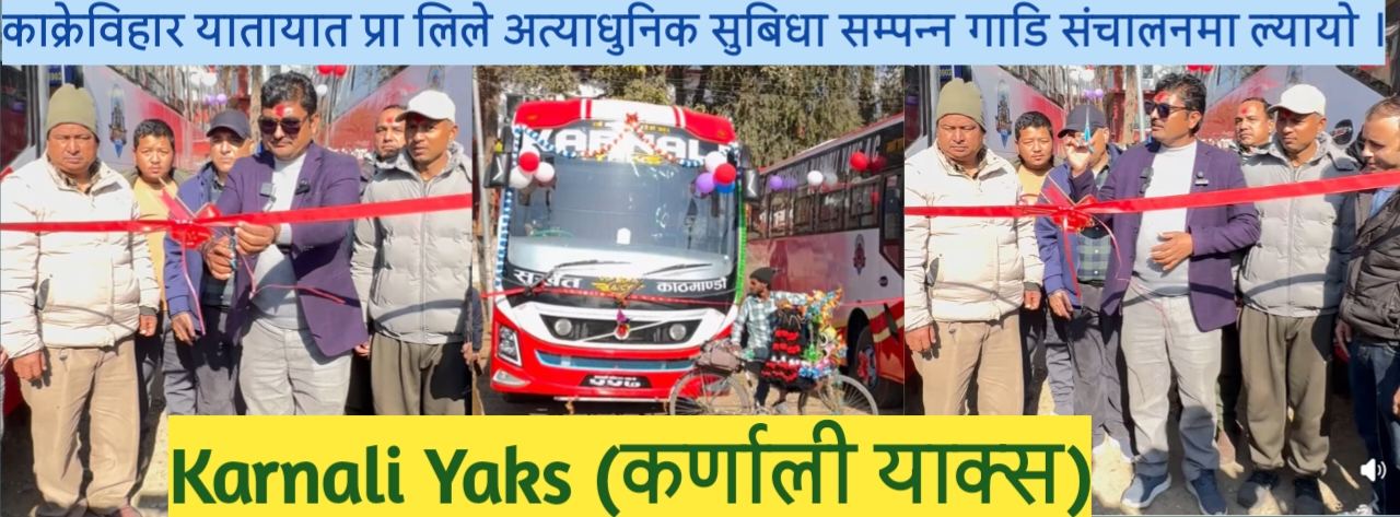 सुर्खेत । यात्रुहरूको सुविधा, सुरक्षा र आरामदायी यात्रालाई प्राथमिकता दिँदै सुर्खेतमा पहिलो पटक अत्याधुनिक सुविधा सम्पन्न बस सेवा सञ्चालनमा आएको छ। काक्रेविहार यातायात प्रा. लि.को स्वामित्वमा रहेको कर्णाली याक्स नामक बस सेवा औपचारिक रूपमा आज शुभ–उद्घाटन गरिएको हो।