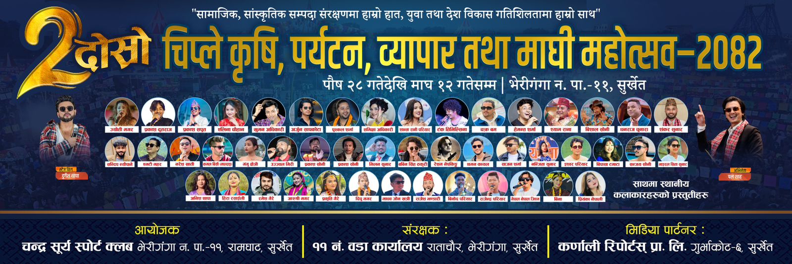 महोत्सव पौष २८ गतेदेखि माघ १२ गतेसम्म सुर्खेत जिल्लाको भेरीगंगा नगरपालिका–११, चिप्लेमा सञ्चालन हुने आयोजकले जनाएको छ।